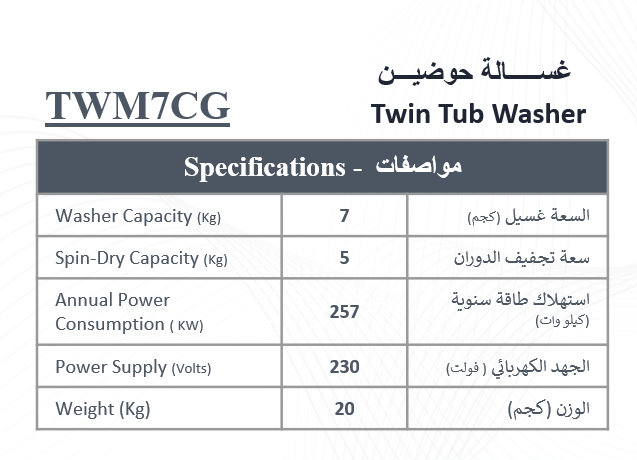 Washer Capacity (Kg) 7 السعة غسيل (كجم)